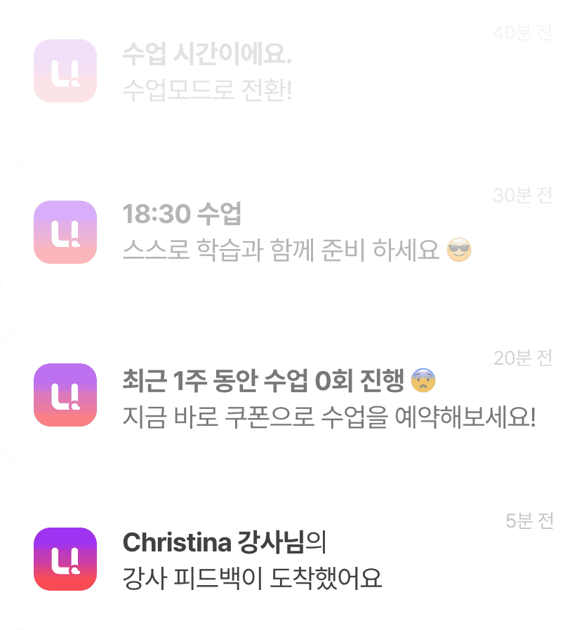수업 전 후 촘촘한 학습 알람과